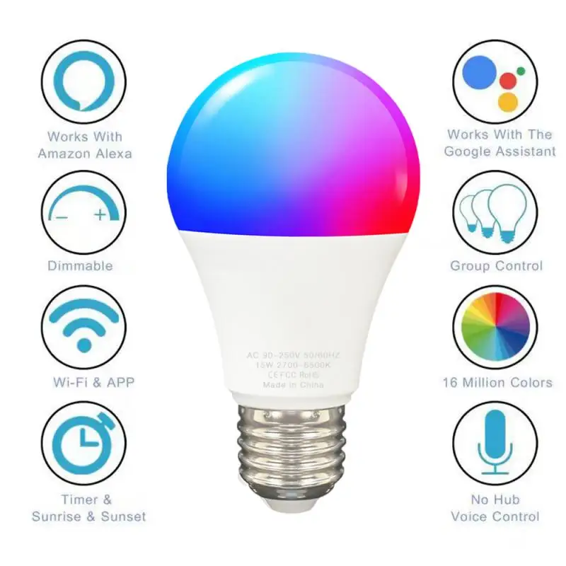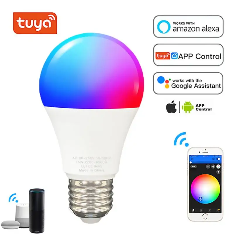 Умная Светодиодная лампа E27 с регулировкой яркости, 15 Вт, Wi-Fi
