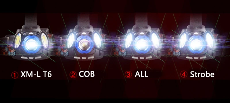 Светодиодный налобный фонарь Головной фонарь XM-L T6 2 * Cob наруж...