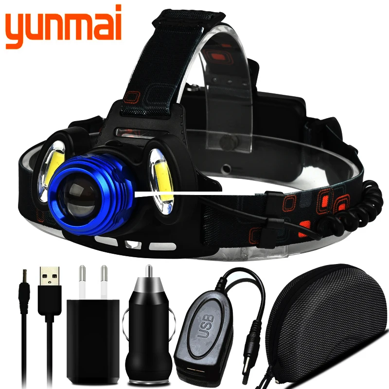 Светодиодный налобный фонарь, налобный фонарь, фонарик XM-L T6 и 2 * Cob, уличный водонепроницаемый фонарь для кемпинга с увеличением, Usb, перезаряжаемый аккумулятор 2x 18650