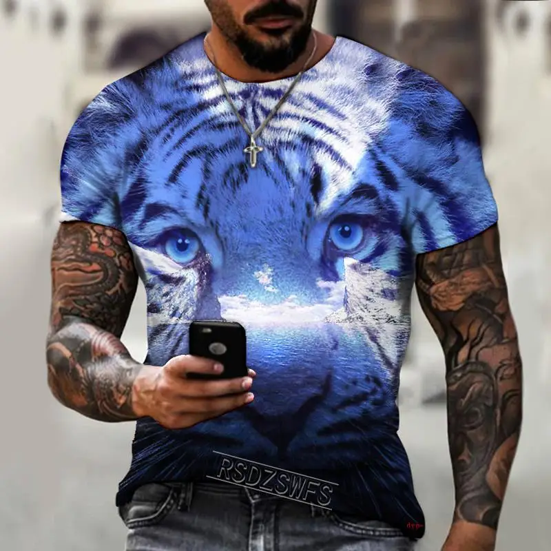 Футболка мужская с 3D-принтом тигра, модная рубашка с круглым вырезом, топ с коротким рукавом, большие размеры до 6XL, на лето