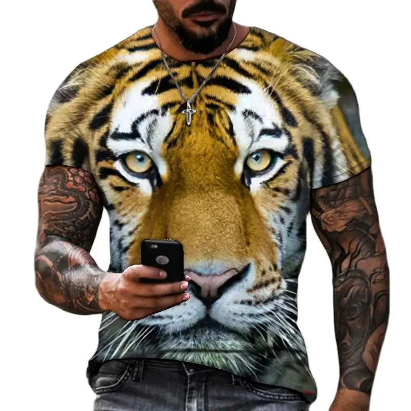 Новая мужская футболка с 3D-принтом тигра и животного, летняя мужск...