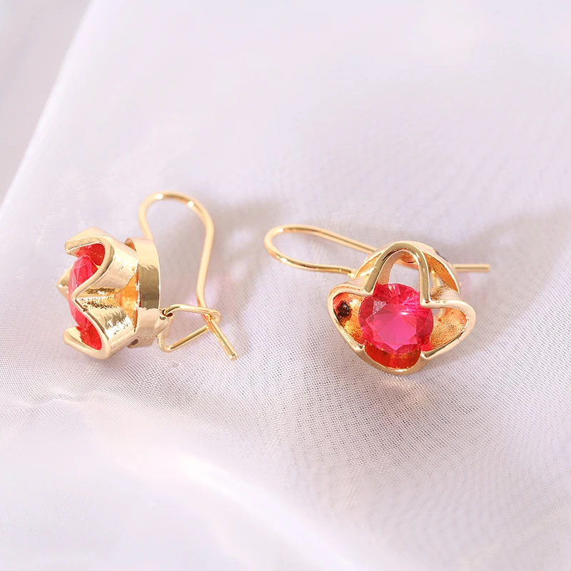 Винтажные серьги золотого цвета с красным кристаллом циркония для ж...