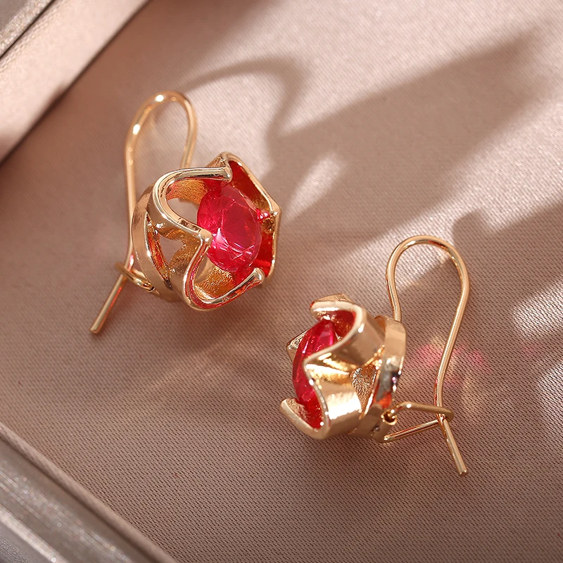 Винтажные модные ромбовидные лепестки золотого цвета Висячие серьги простые красные драгоценные камни металлические серьги с крючком для женщин Свадебные украшения подарок