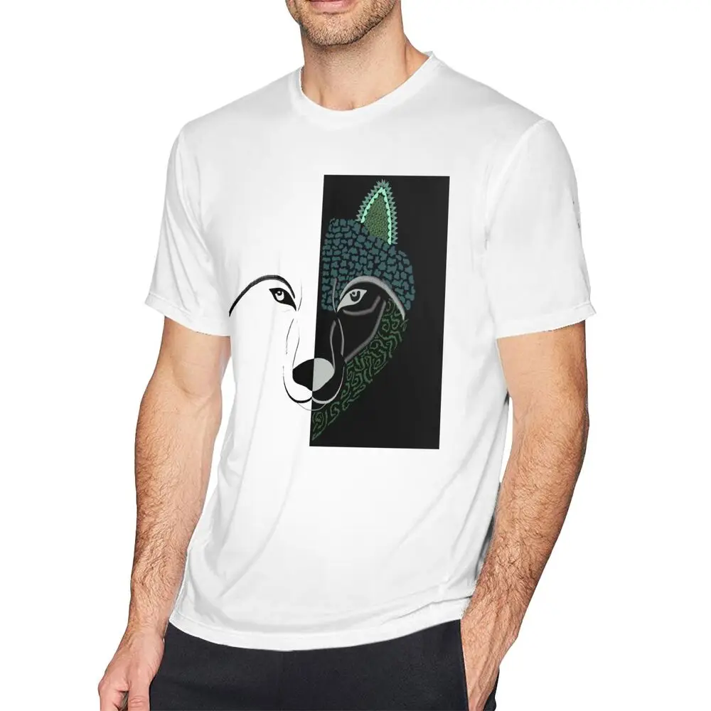 Черно-белая футболка Yingyang с изображением лица волка, большая модная футболка с принтом, 100 хлопок, Мужская футболка
