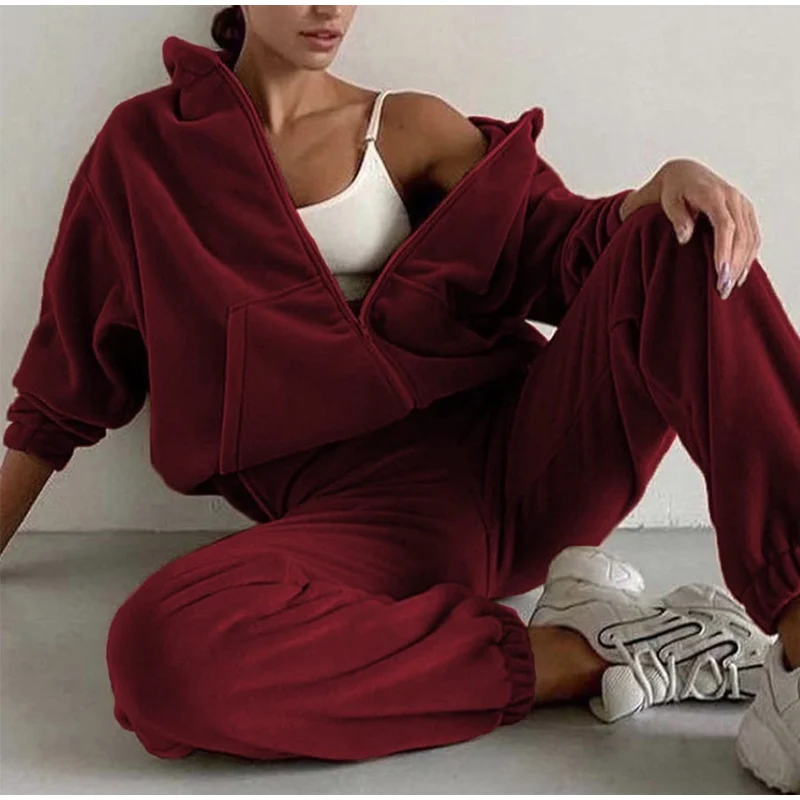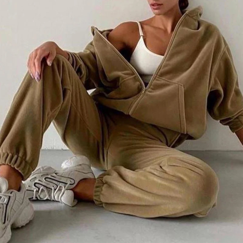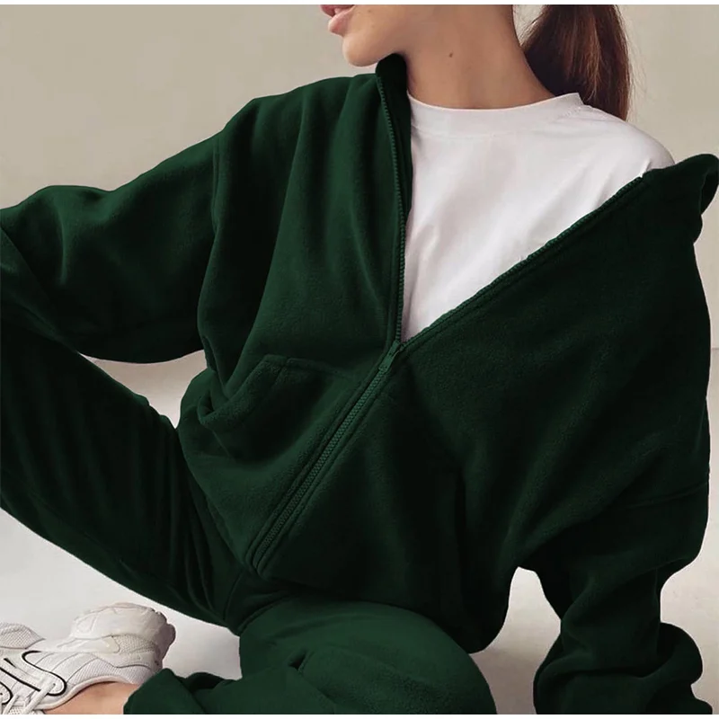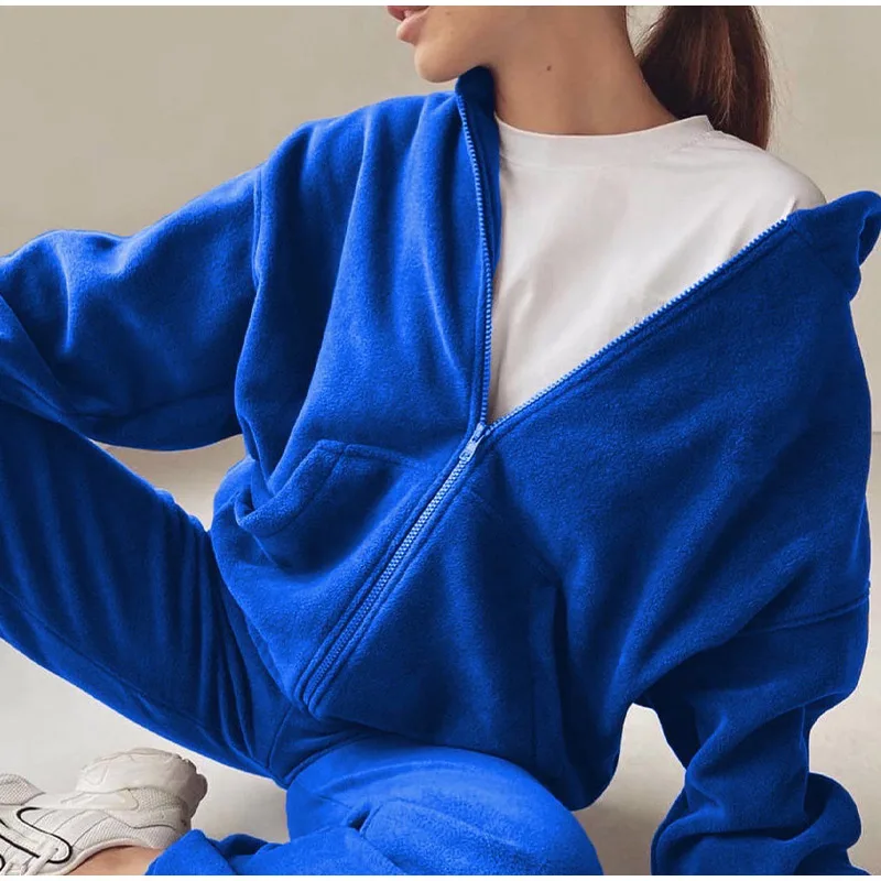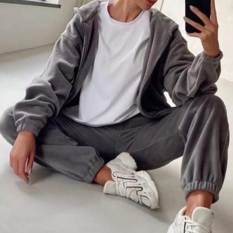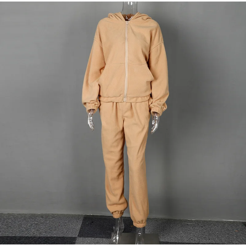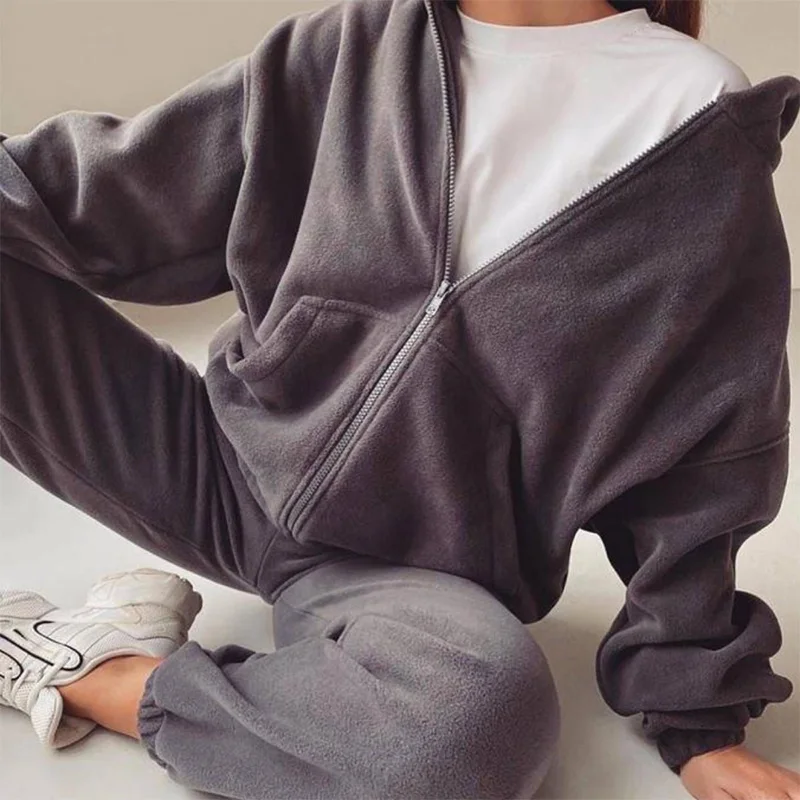 Повседневный Женский комплект из двух предметов с флисовой толстовк...