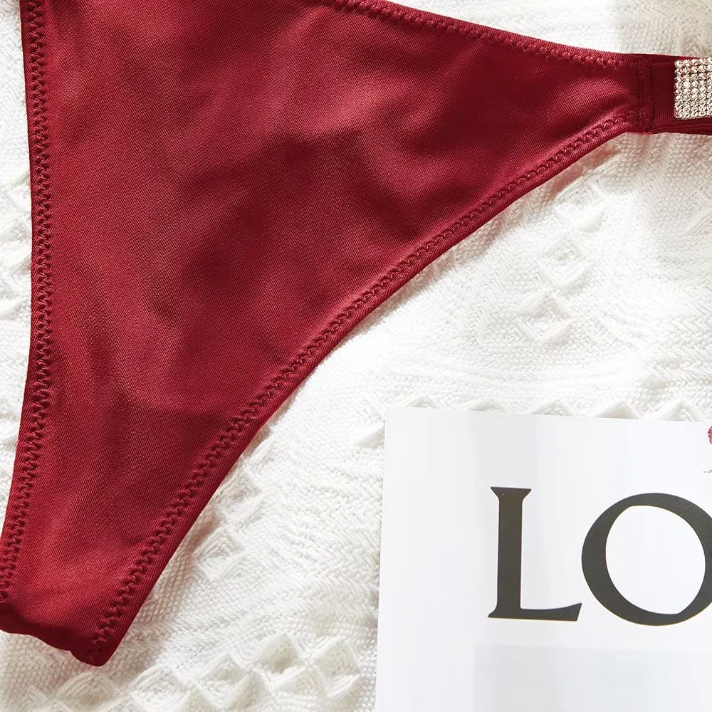 Оптовая продажа стразы нижнее белье женское нижнее белье трусики стринги шелковые бесшовные Т-образные Сексуальные трусы бесшовное нижнее белье