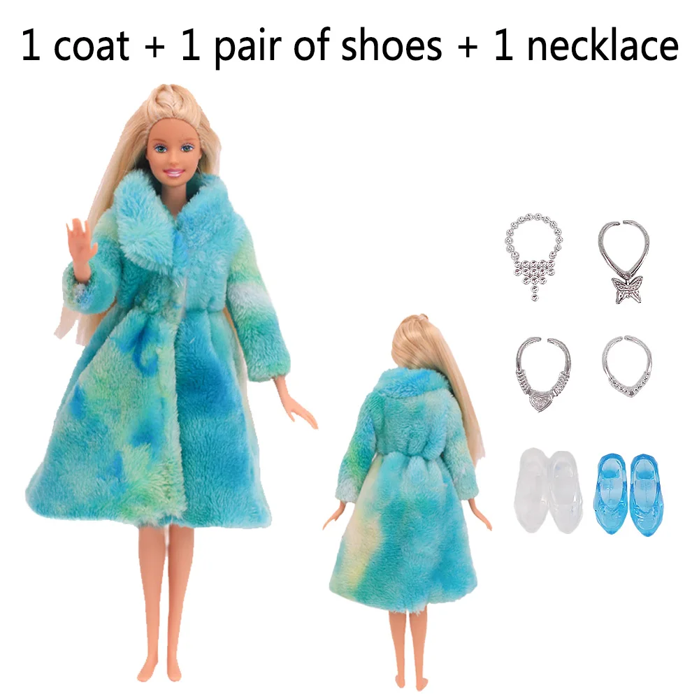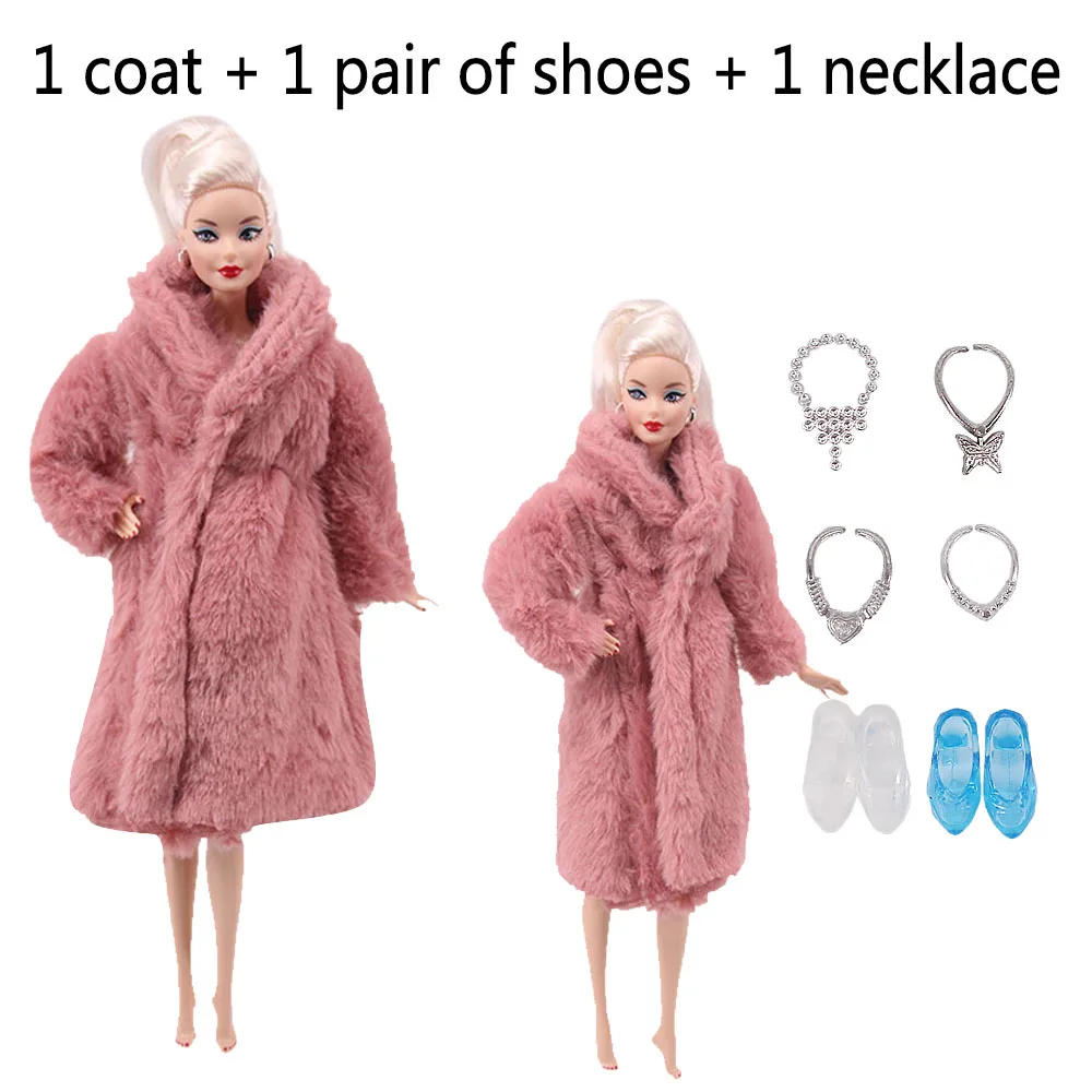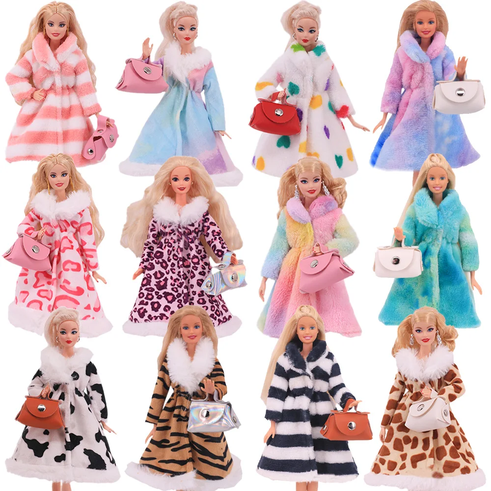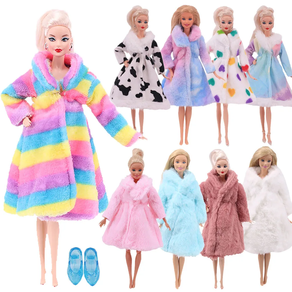 Мягкое плюшевое пальто с длинным рукавом, верхнее платье, зимняя теплая Повседневная одежда, аксессуары, Барби, детская игрушка, Одежда для кукол 11,8 дюйма