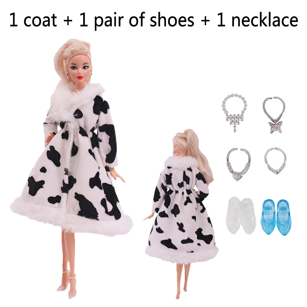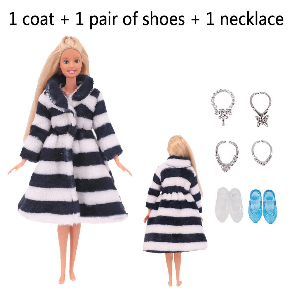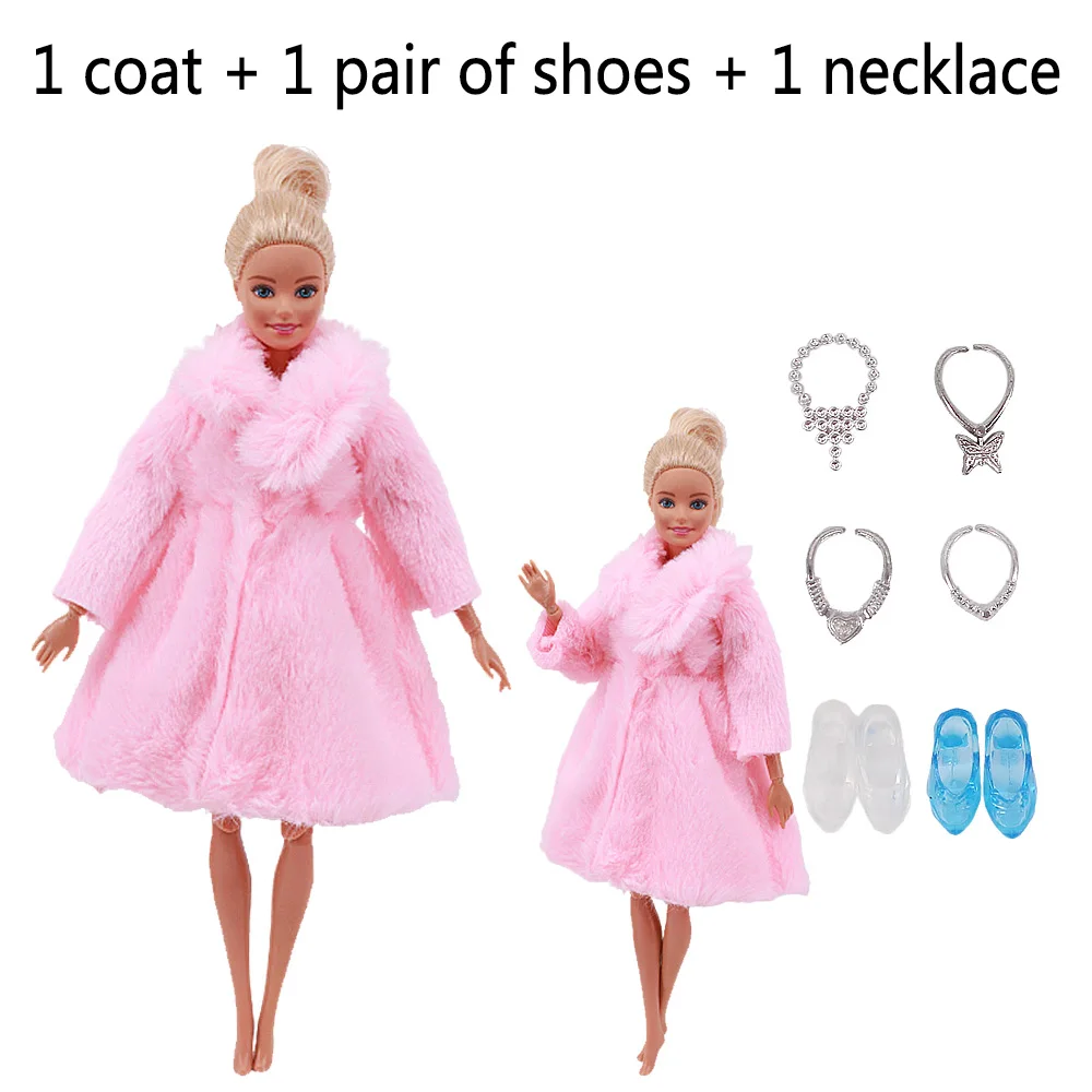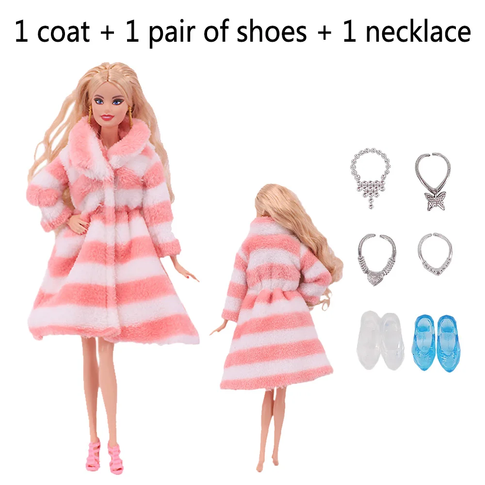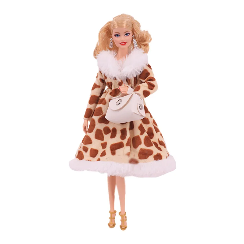 Мягкое плюшевое пальто с длинным рукавом, верхнее платье, зимняя теплая Повседневная одежда, аксессуары, Барби, детская игрушка, Одежда для кукол 11,8 дюйма