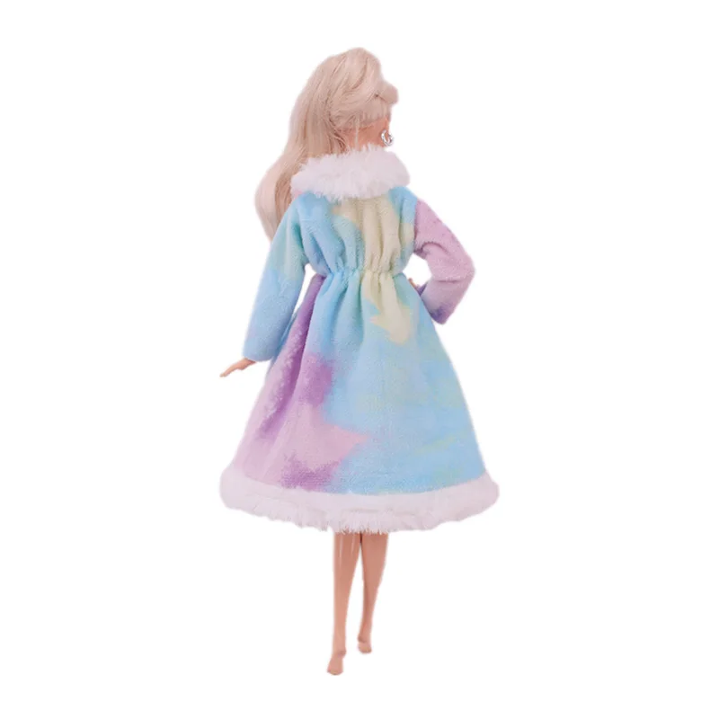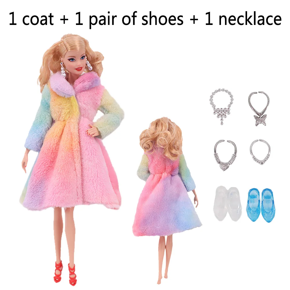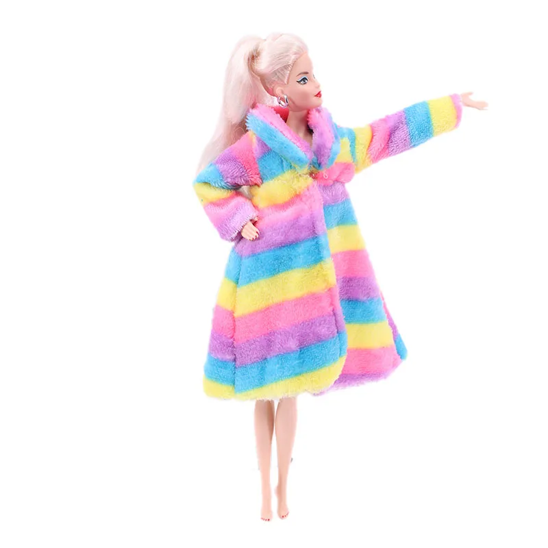 Кукольное платье Барби, разноцветное мягкое меховое пальто с длинны...