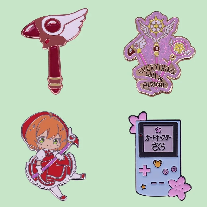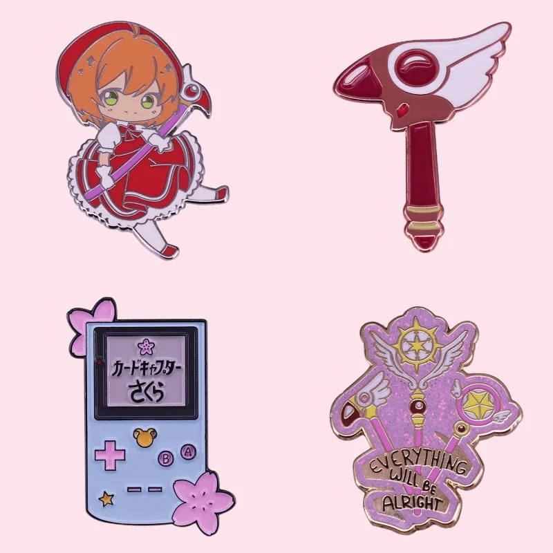 Отличное качество аниме мультфильм Сакура эмалевые булавки Kawaii значки Kero Chan волшебная палочка уплотнение сотрудники Таро Броши подарок для девочек