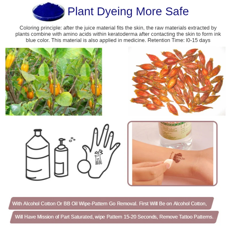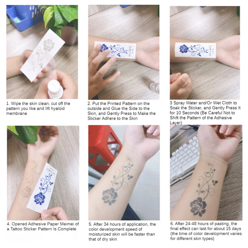 Наклейки для татуировки сока не легко вытереть после использования, вам нужно ждать 15-20 дней, чтобы автоматически выцветать