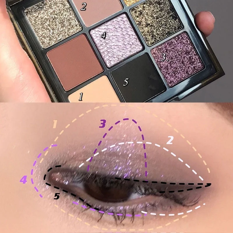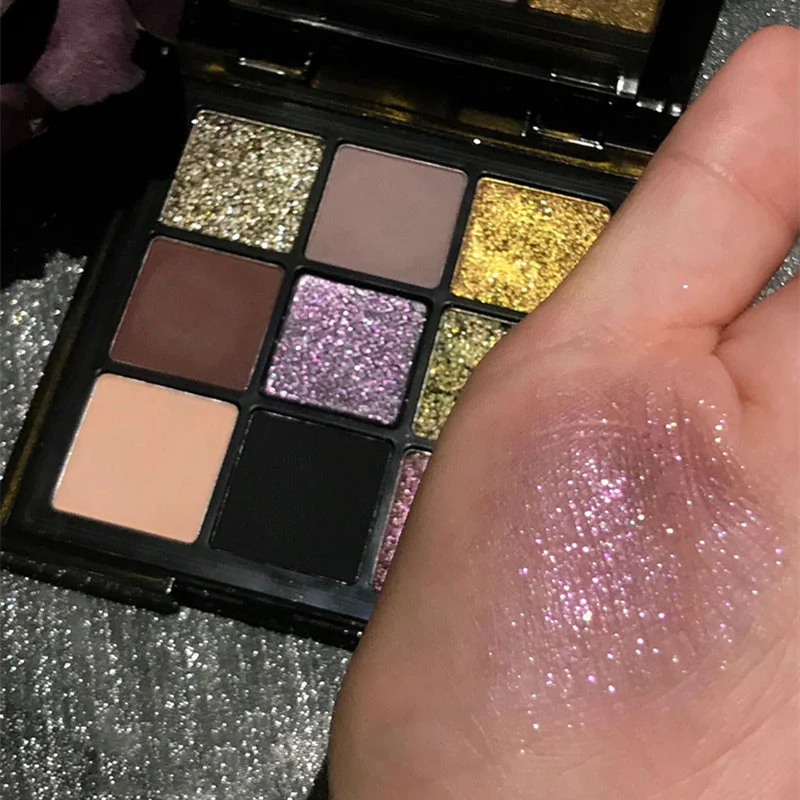 Палетка фиолетовых и золотых теней для век, 9 цветов, черная Палетк...