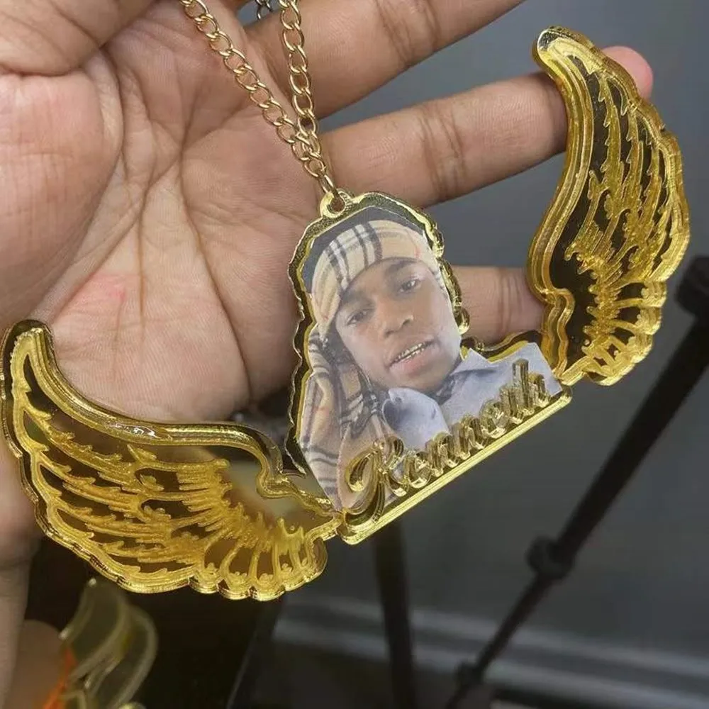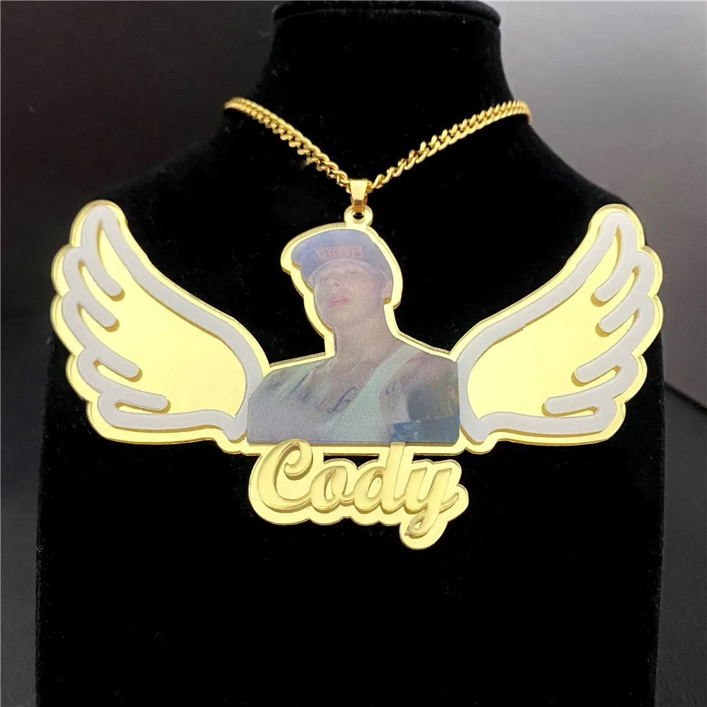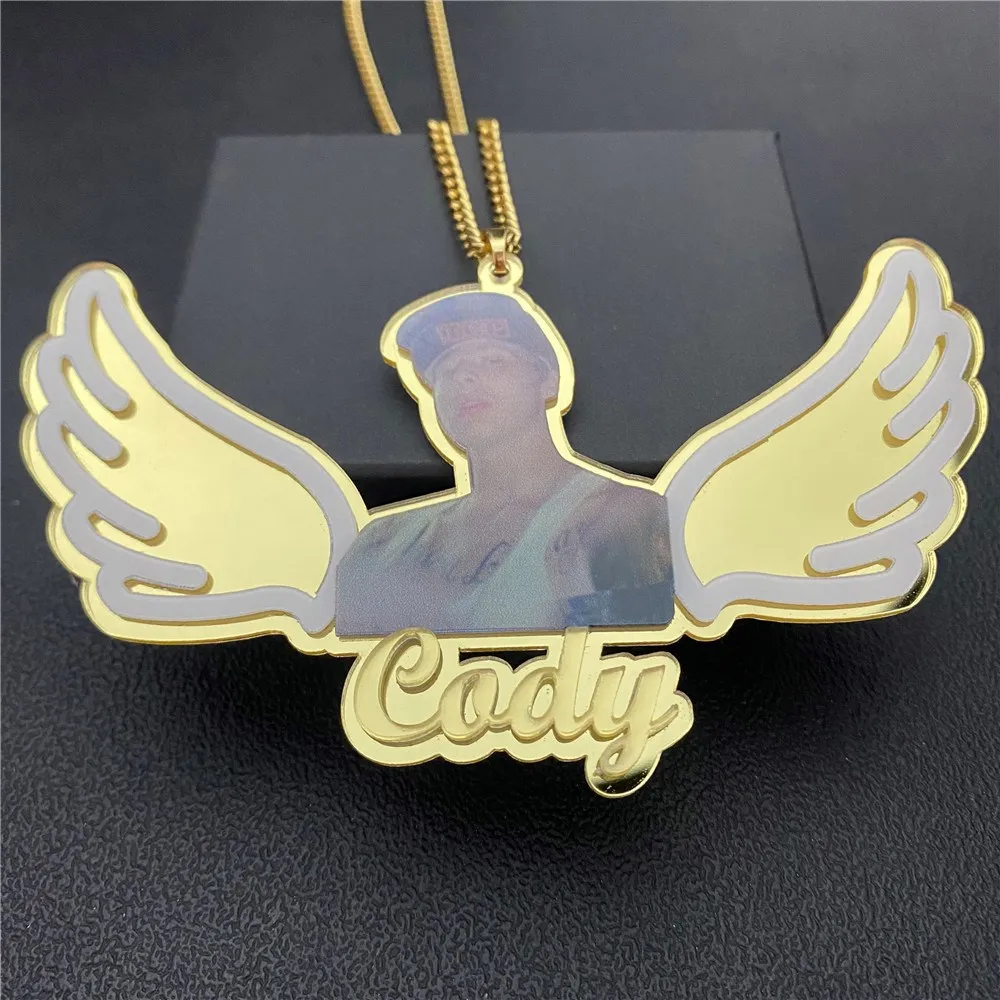 Индивидуальное акриловое ожерелье с именем и крыльями, персонализированное фото, ожерелье для детей, подвеска для детей, подарки