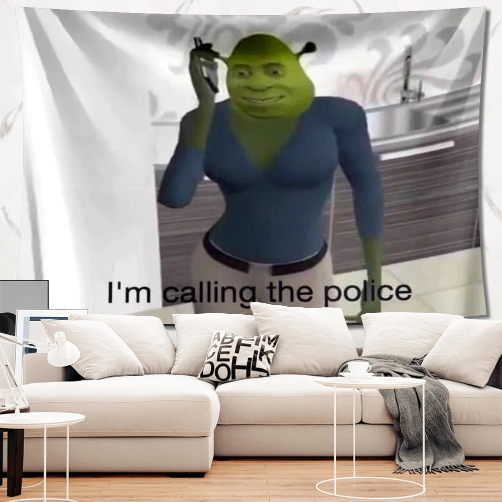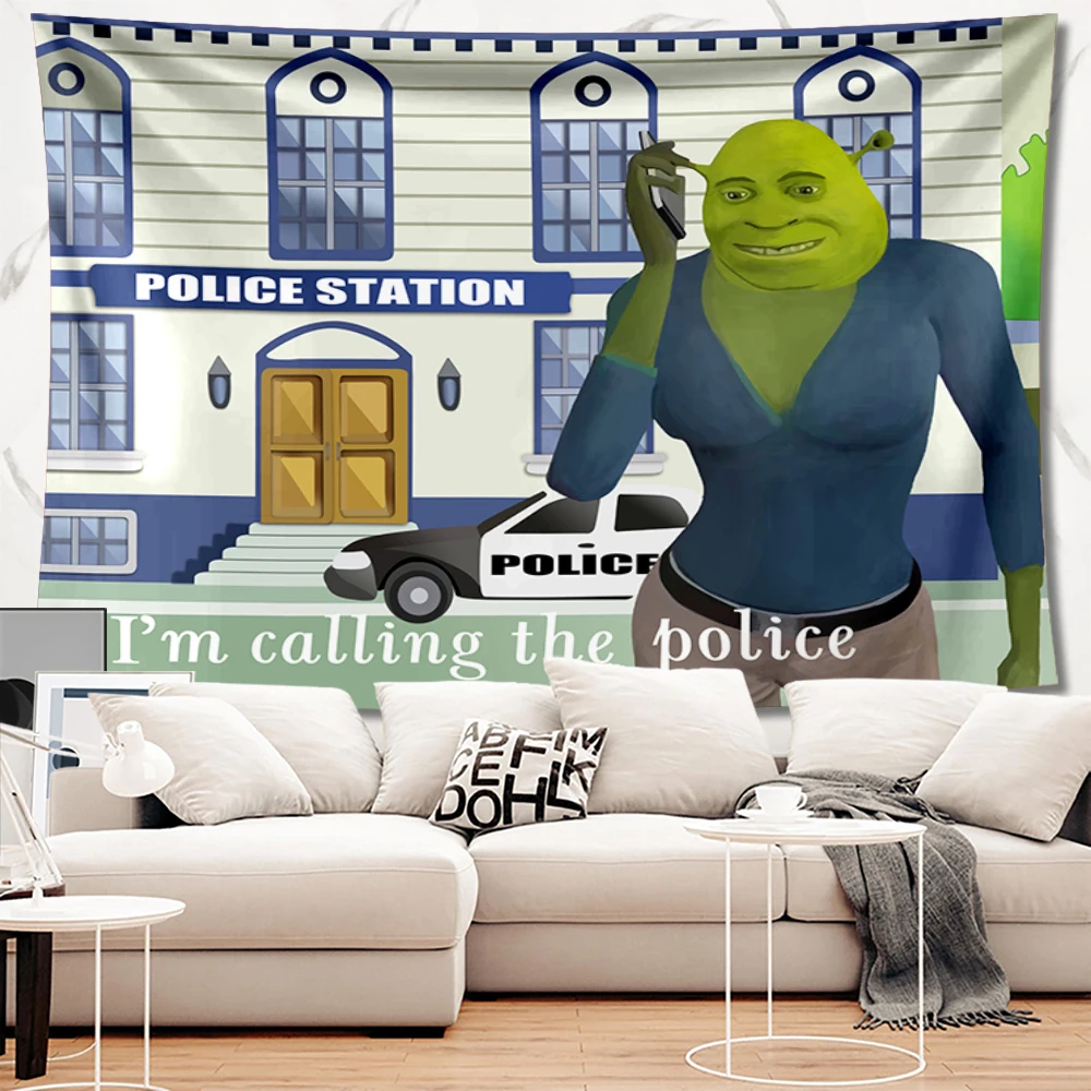 Шрек им вызов полиции Meme Забавный гобелен эстетический Настенный декор Psychedelic украшение комнаты настенное покрытие ковер коврик для йоги
