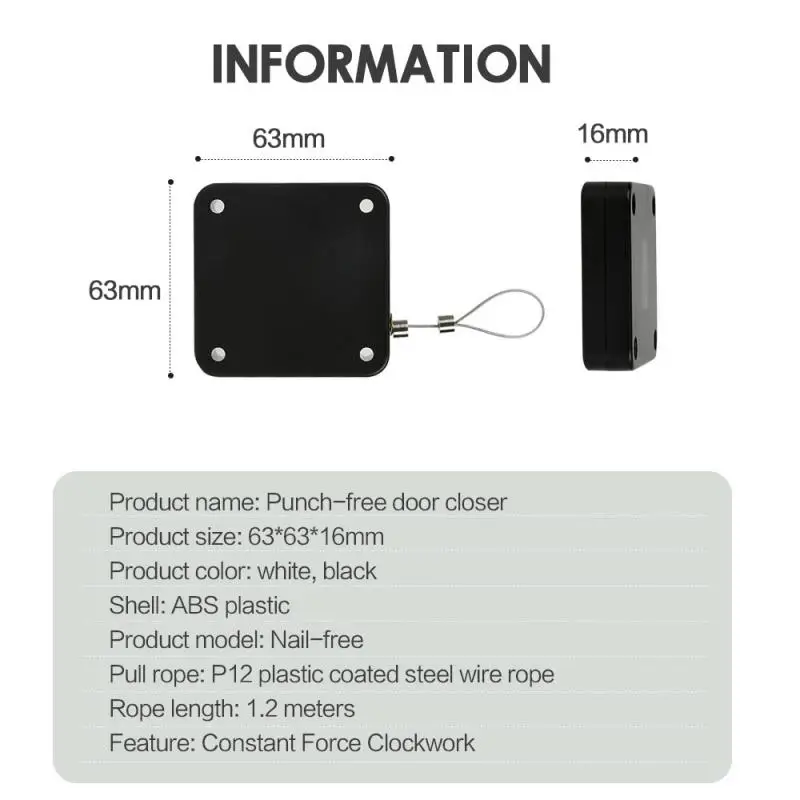 4. Простая и быстрая установка: Непористая установка клея (установка и использование, использование через 24 часа, более Сильная Липкость), После приклеивания дверного доводчика, липкость очень прочная и не упадет легко. И его можно удалить в любое время, когда он не используется, не повреждая поверхность объекта. (Также можно зафиксировать ногти, не включая ногти)