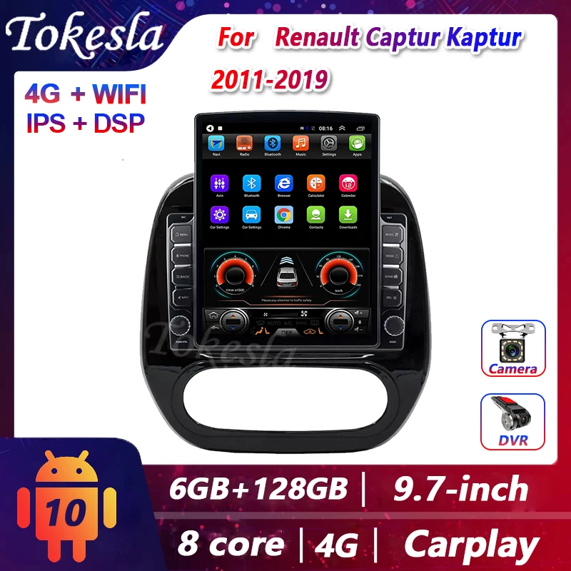 Автомагнитола Tokesla для Renault Captur Kaptur, Android, мультимедийный проигрыватель, Dvd, Tesla, сенсорный экран, 2 Din, стереоприемник, навигация, 4G