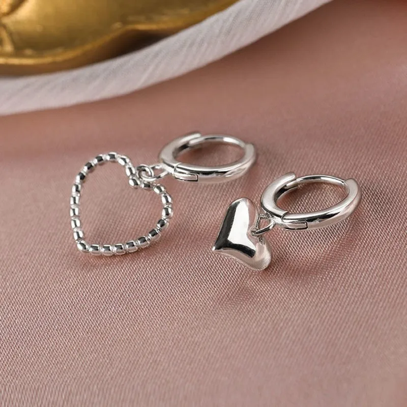 Элегантные серьги-кольца серебряного цвета, асимметричные ажурные серьги-гвоздики с подвесками в форме сердца для женщин и девушек, ювелирные изделия для вечеринок, аксессуары