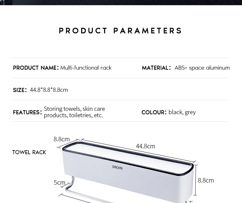 Bathroom Shelf Waterproof Storage Rack With Towel Rack Bathroom Set Plastic Shelf Powerful Wall-mounted Toilet Metal Towel Rack
