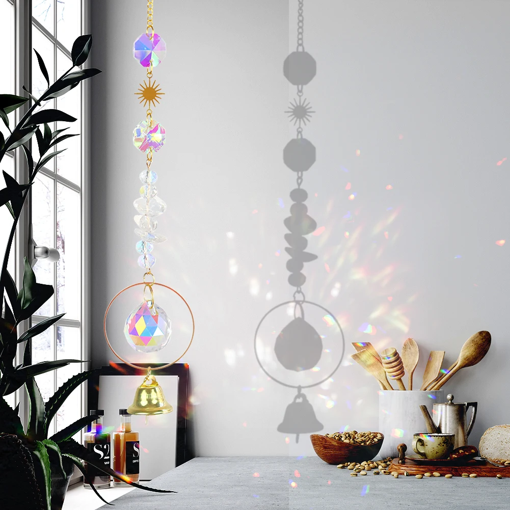 Аметистовый колокольчик, Кристальный колокольчик, солнечный светильник, ловушки, призмы, Висячие радужные колокольчики для окон, занавески, садовый декор