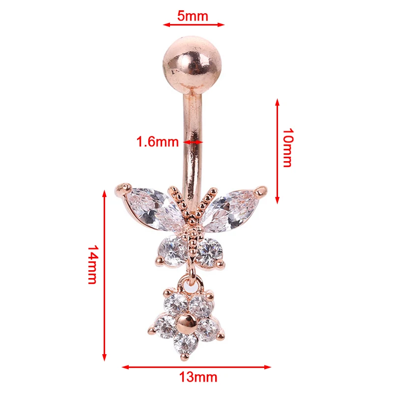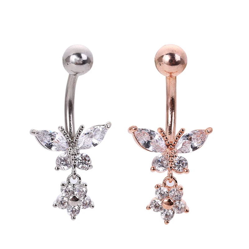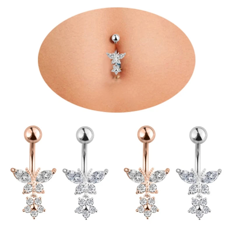 Новинка кольцо для пупка с кристаллами бабочка цветок модное пирсин...