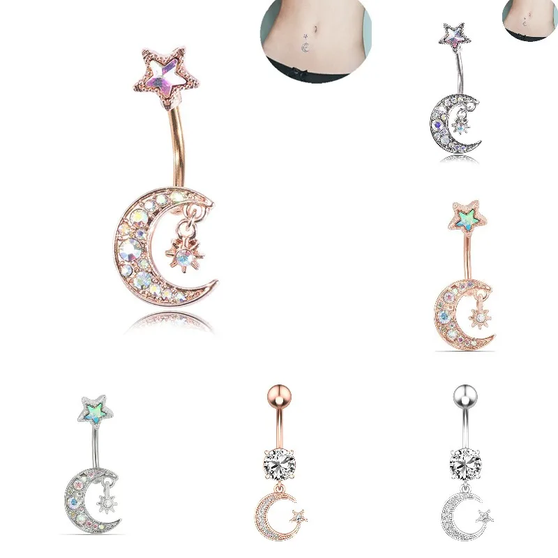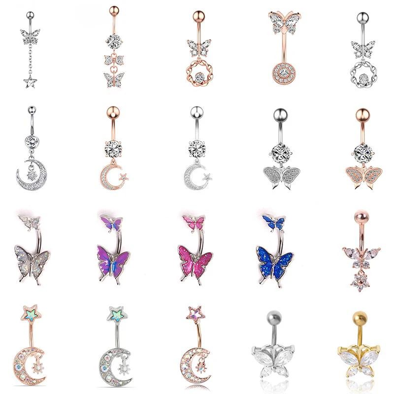 Кольцо-бабочка для пупка с Луной и звездами, Ювелирное Украшение для тела с зажимом для пупка, пупка с узелком