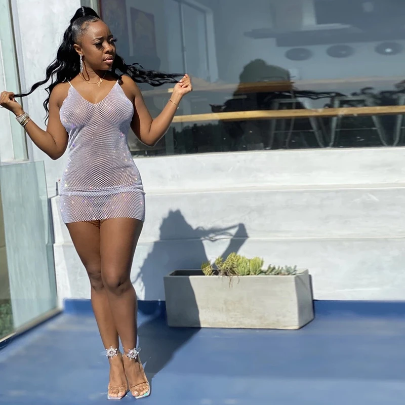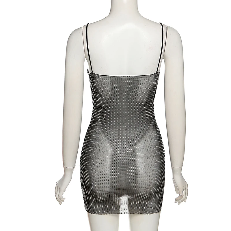 Женская Блестящая сетчатая прозрачная кофта с глубоким вырезом, мини-платья для женщин, модная одежда y2k, элегантная Клубная одежда для вечерние НКИ, женские платья