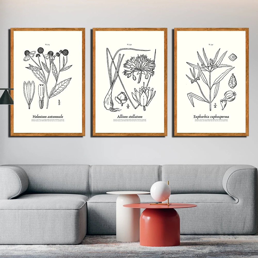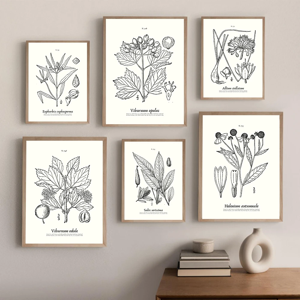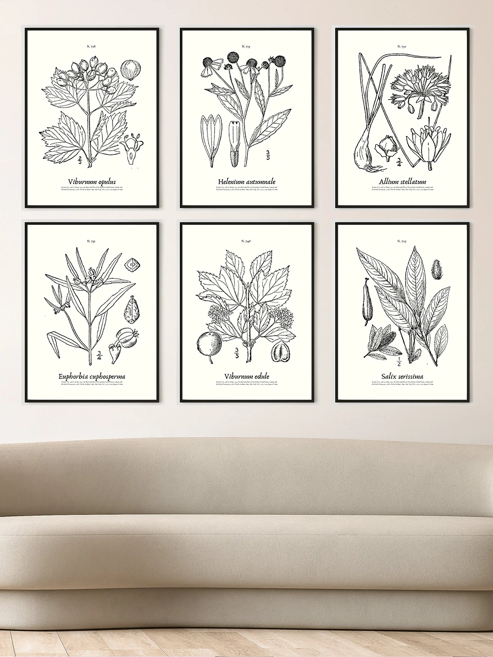 Растительные принты, винтажные черные и белые растения, плакаты, цветочные иллюстрации, холст, живопись, настенные картины, гостиная, домашний декор