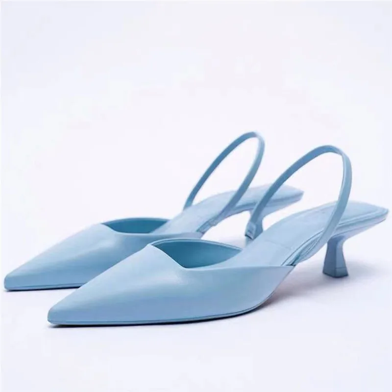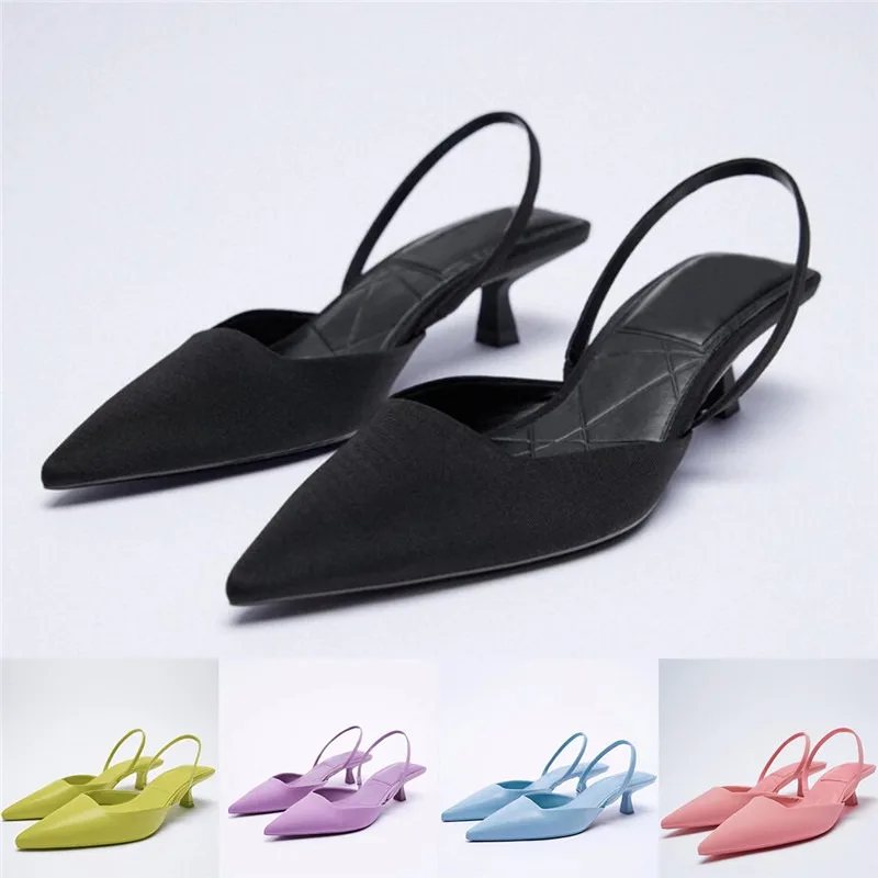 Женские босоножки без задника с острым носком, на среднем каблуке