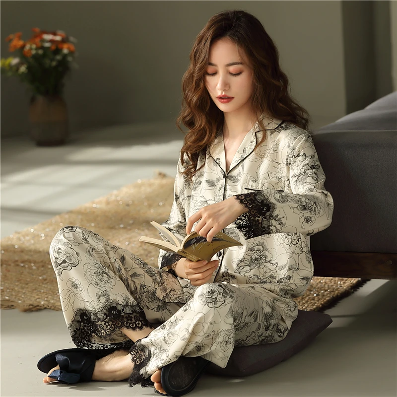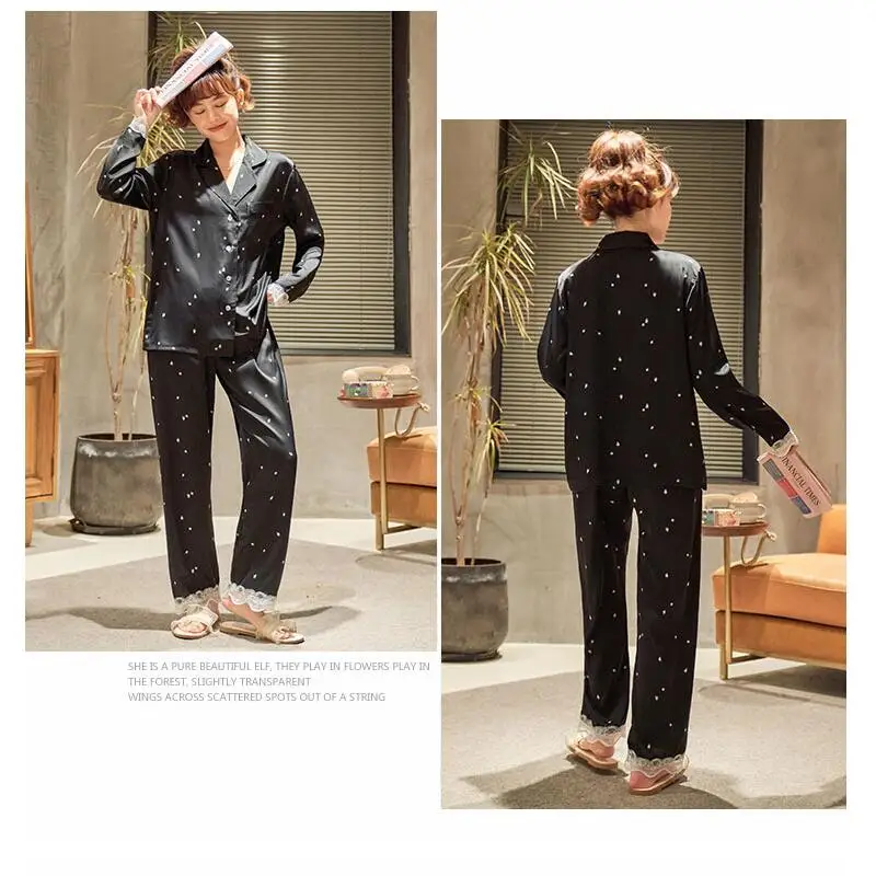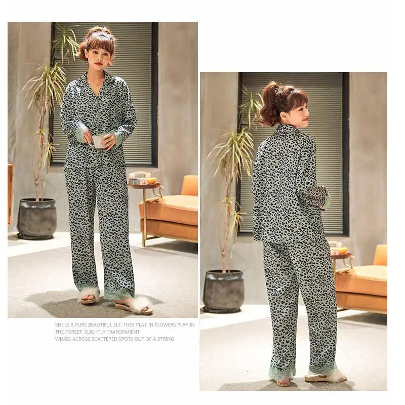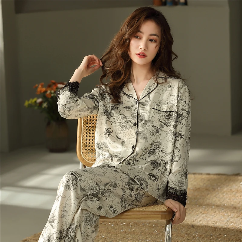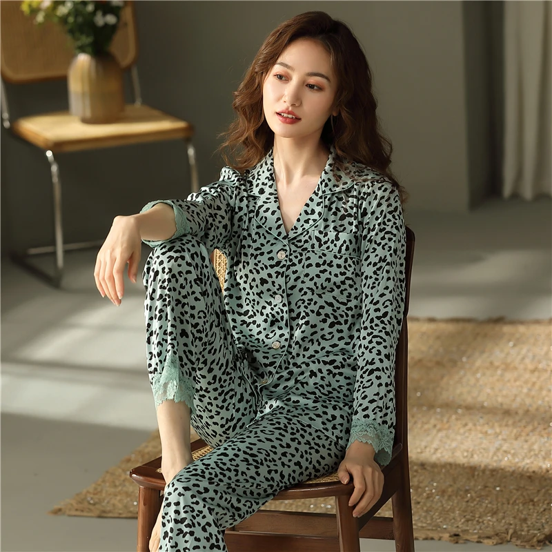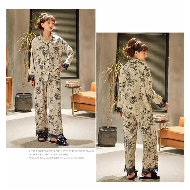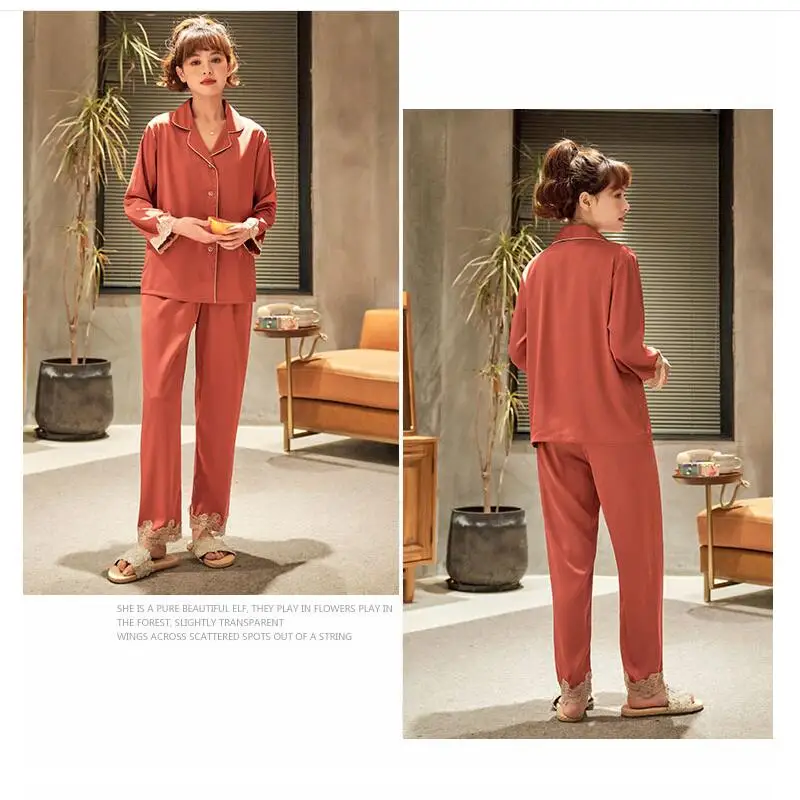 Пижамный комплект Женский атласный с V-образным вырезом и длинными рукавами