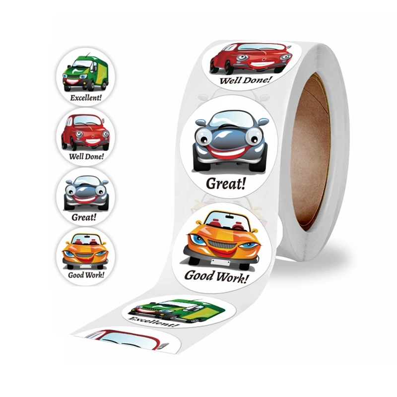 500 шт. 1 дюйм. Мультяшный автомобиль, наклейка для детского вознаграждения, Детская Классическая игра, сделай сам, подарочная упаковка, герметичная этикетка, декоративные наклейки