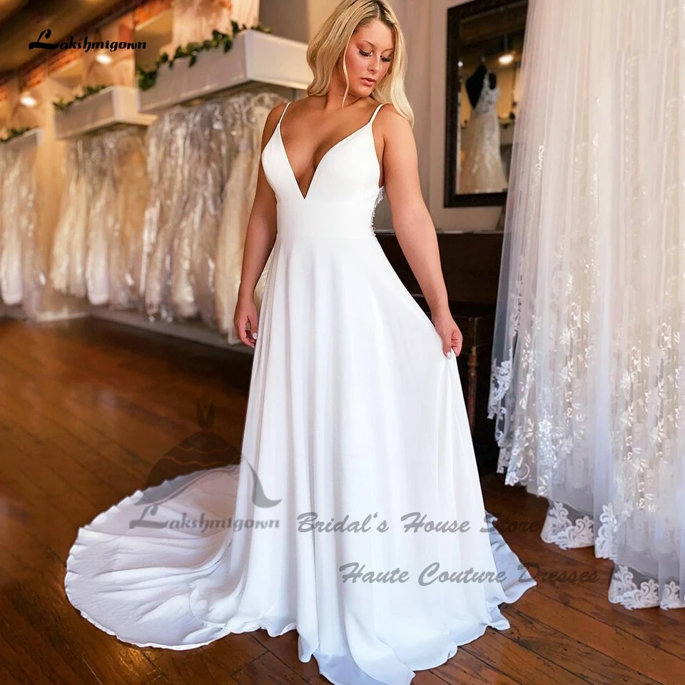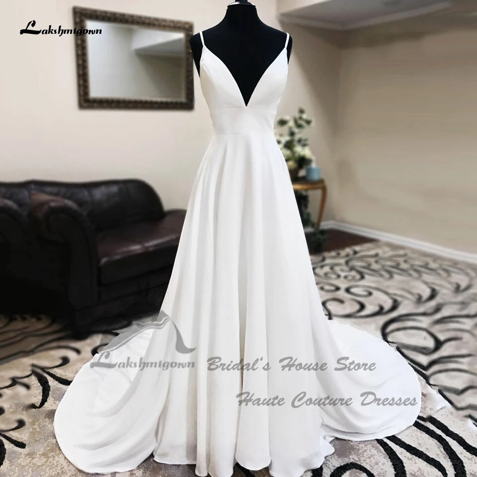 Простое белое шифоновое длинное пляжное свадебное платье для невесты 2022 свадебное богемное шикарное свадебное платье А-силуэта спагетти на бретелях