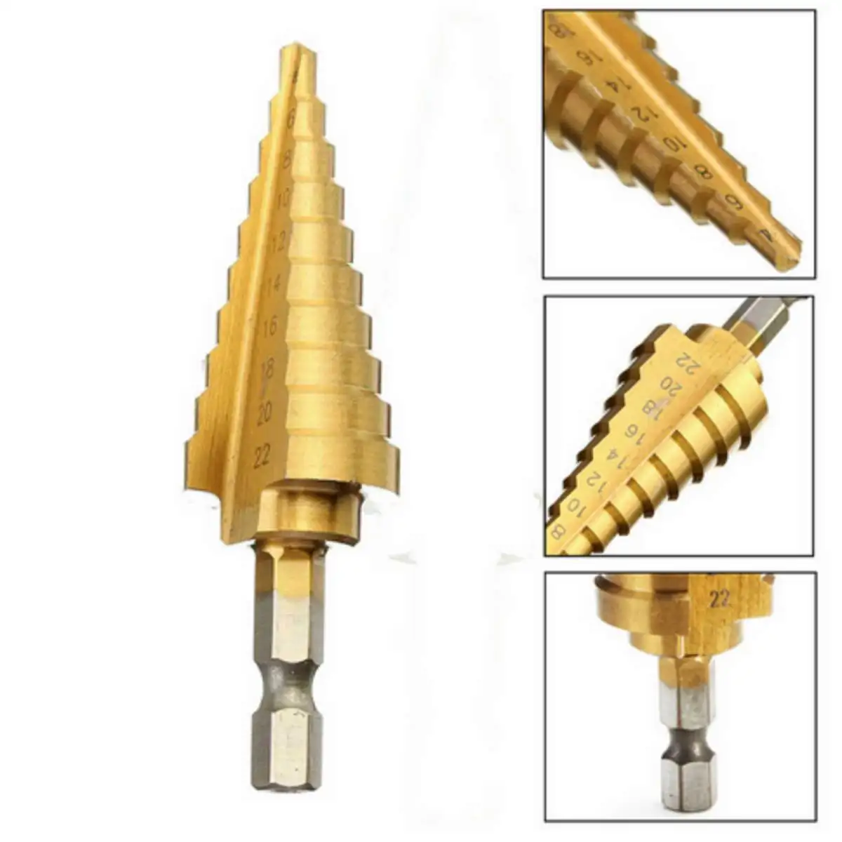 1 шт. шестигранное титановое ступенчатое Коническое сверло 4-22 мм резак для отверстий из быстрорежущей стали для листового металла сверления дерева высококачественные Деревообрабатывающие инструменты