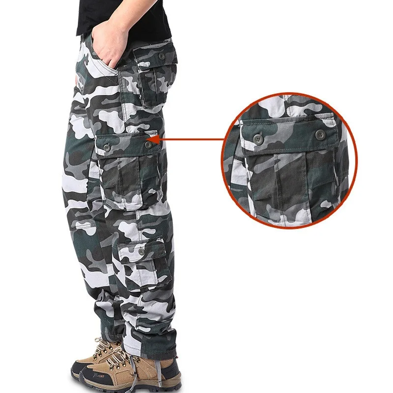 Мужские военные камуфляжные брюки-карго, повседневные хлопковые мешковатые брюки с несколькими карманами, уличные тактические прямые армейские брюки