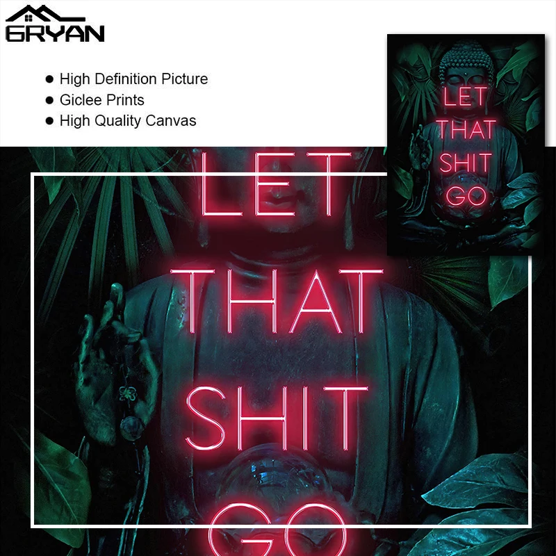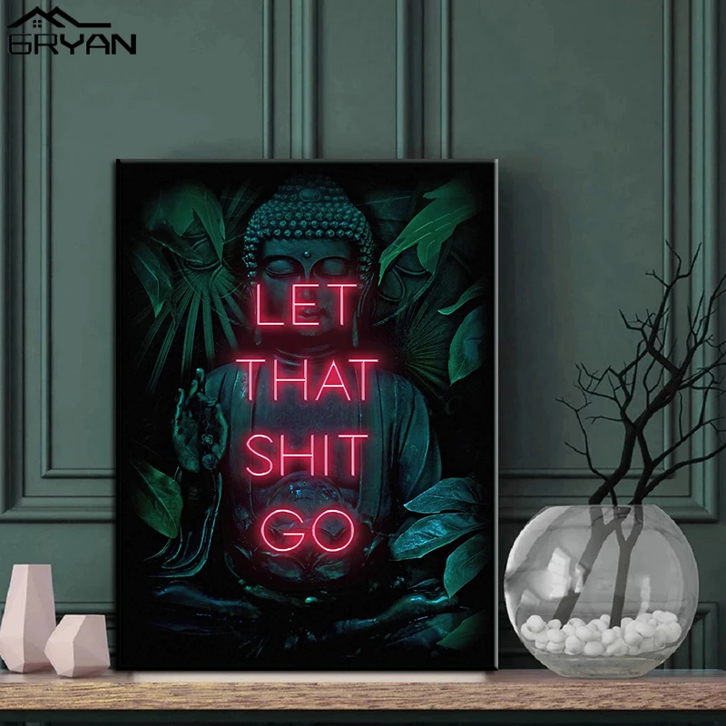 Вдохновляющие цитаты Let That Go, печать на холсте, Постер, Будда, буддизм, картина дзен, Йога, лист, картина, гостиная, домашний декор