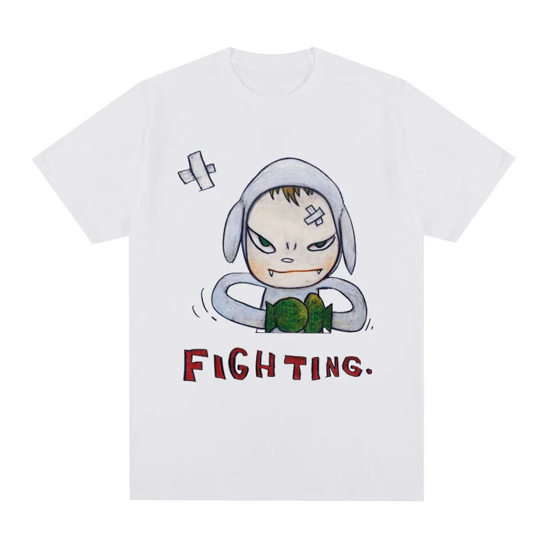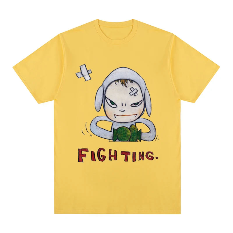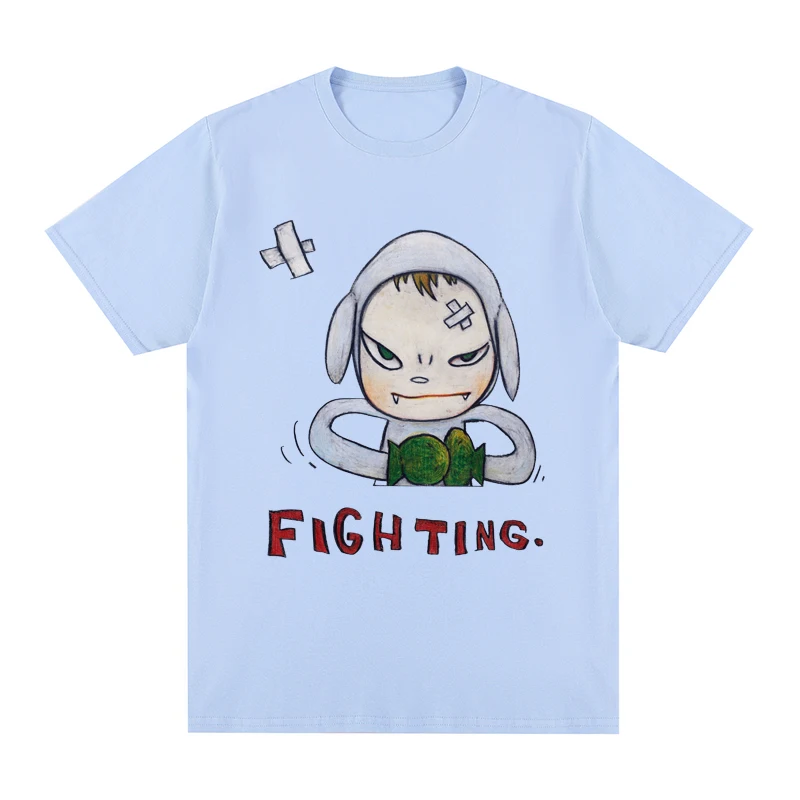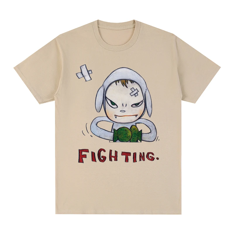 Футболка Yoshitomo с надписью Nara fight it out, Хлопковая мужская футболка, новая футболка, мужские топы Wo