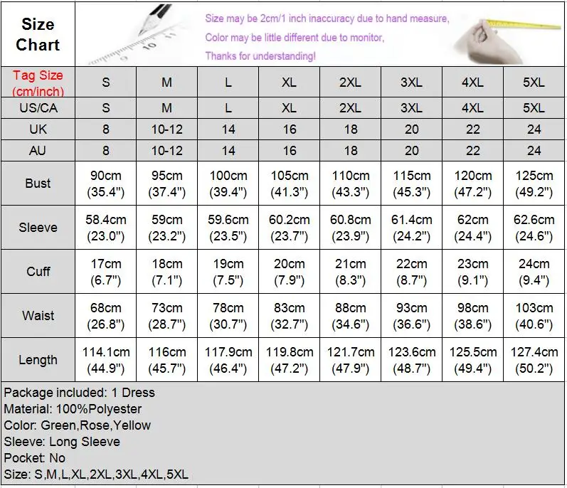 Посылка включает в себя: 1 платьеМатериал: 100% полиэстерЦвет: зеленый, розовый, желтыйРукав: длинный рукавКарман: нетРисунок: однотонныйДлина: до середины икрыОсобенности: плиссировкаСтиль: Отдых, праздник, Европа, повседневные, модныеСезон: весна, осеньПовод: вечерние, праздничные, уличные, рабочие, путешествия, встречи, свадебные, вечерниеВнимание:1. Перед покупкой, пожалуйста, проверьте размеры в таблице размеров!2. Размер может быть неточным на 2 см/1 дюйм из-за ручного измерения, цвет может немного отличаться из-за монитора, спасибо за понимание!3. Предложение холодной воды ручная стирка. Это может помочь предметам сохранить свою форму.