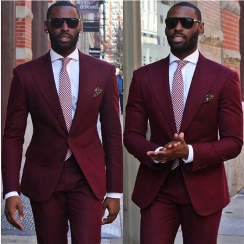 Мужской костюм из 2 предметов, бордовый пиджак и брюки с галстуком, приталенный Блейзер, деловая одежда для выпускного вечера, 2022