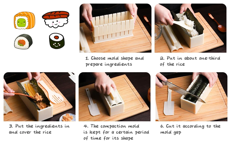 Форма для суши, устройство для приготовления рисовых шариков для суши, кухонный набор инструментов, японская закуска, роллер для риса из морских водорослей нори, кухонные принадлежности, инструменты для суши