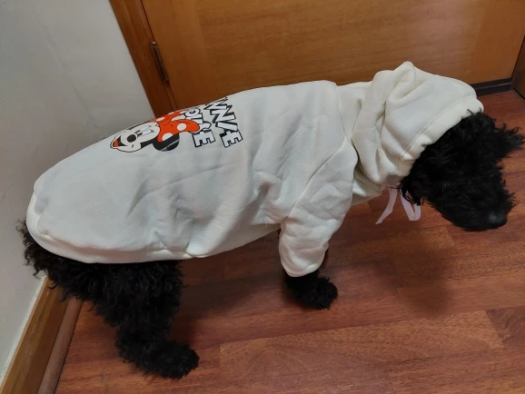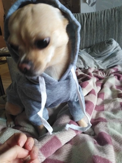Толстовка классная. Рекомендую. Я ошиблась с размером, для шпица 2 кг оказалась велика.