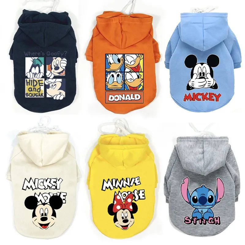 Осенняя одежда для собак Disney, толстовки для собак на шнурке, Зимний Теплый Щенок с Микки Маусом, средней длины, цвет Френч, чихуахуа, Мопса