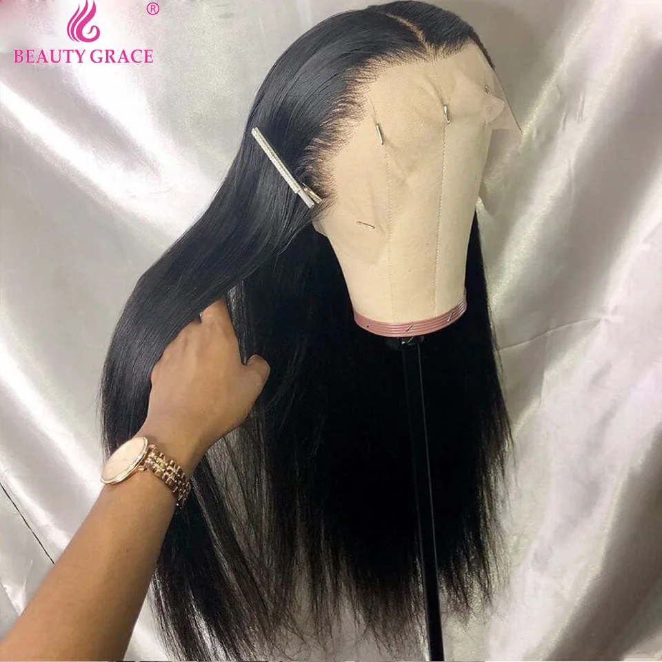 Парики из человеческих волос на сетке спереди длинные прямые парики...