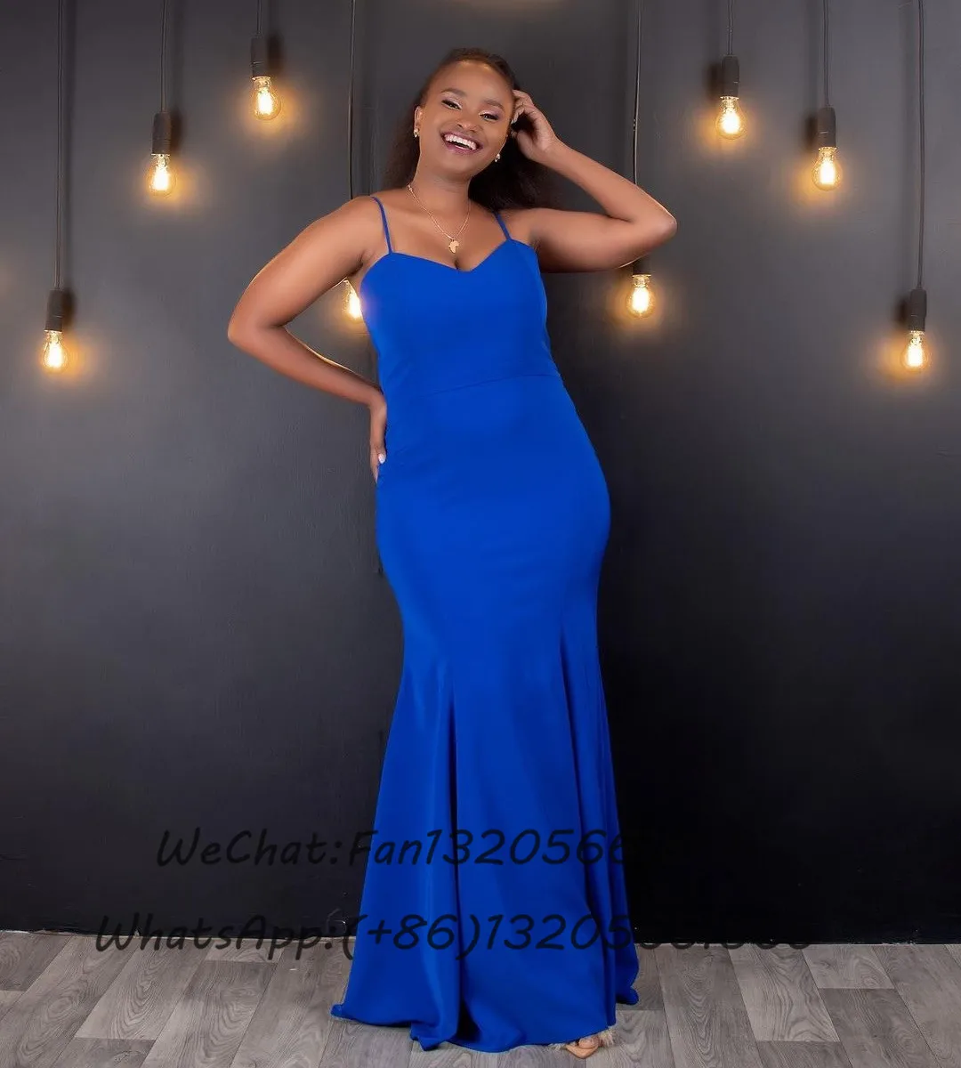 Женское длинное платье подружки невесты, синее платье с V-образным вырезом на тонких бретельках, лето 2022