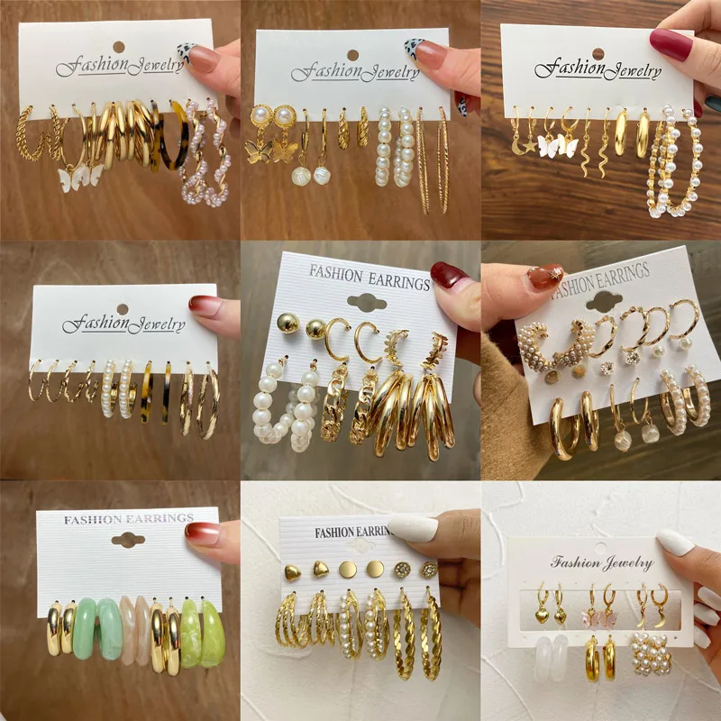 Серьги-кольца в стиле бохо золотого цвета, набор для женщин, геомет...