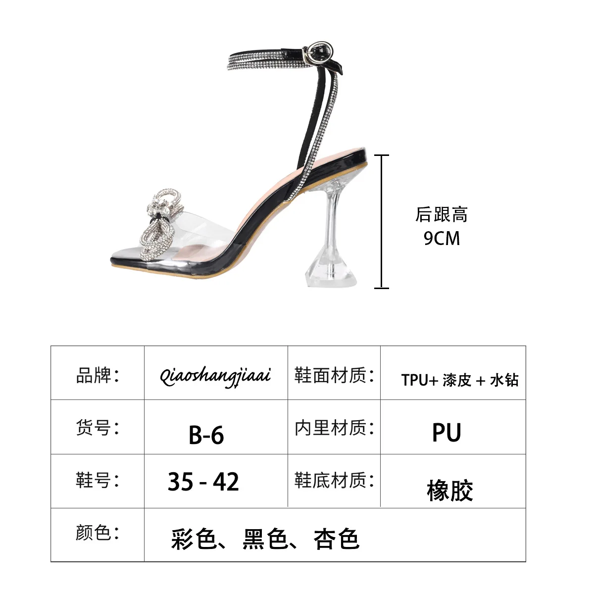 Стразы женские сандалии с бантом из ПВХ, желейные туфли на каблуках...
