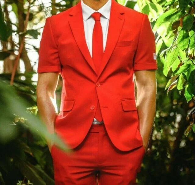 Мужские костюмы для жениха из двух предметов, красные бриджи с заостренными лацканами, облегающий пиджак с двумя пуговицами для выпускного вечера и вечеринки, 2022
