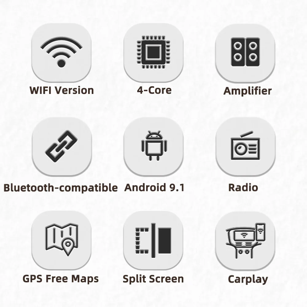 Система: Android 8,1/9,1Экран Размеры: 10,1''Память: 1 Гб (RAM)+ 16 Гб (ROM)/2 ГБ (RAM)+ 32 Гб (ROM)Разрешение экрана: 1024*600Зеркальная ссылка: Android/IOSВыходная мощность: 4*45 ВтРабочая температура:-40 ℃-80 ℃Функция управления рулем: ПоддержкаВерсия Bluetooth: 4,0Чип усилителя мощности: AC7388Радио диапазон: FMВидеовыход: ПоддержкаКарты: Встроенные автономные картыWIFI: поддержкаUSB: двойной USB интерфейсИзменение логотипа автомобиля: ПоддержкаФормат аудио: APE/FLAC/WAV/MP3/WMA и т. Д.Формат видео: MKV/RMVB/AVI/MP4/MDV и т. Д.Формат изображения: PNG/JPEG/JPG/GIF/WBMP/BNP и т. Д.Заводское ключевое слово: 1617Язык: китайский/английский/французский/итальянский/Корейский/японский/арабский/испанский/португальский/русский/Турецкий/Вьетнамский/Иврит/Польский/немецкий и т. Д.