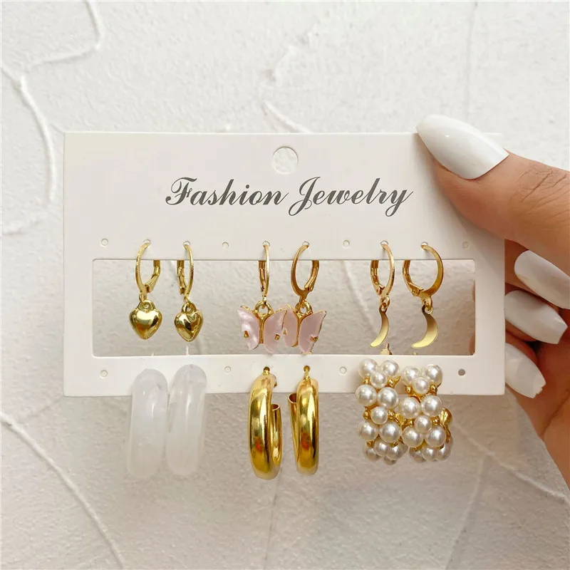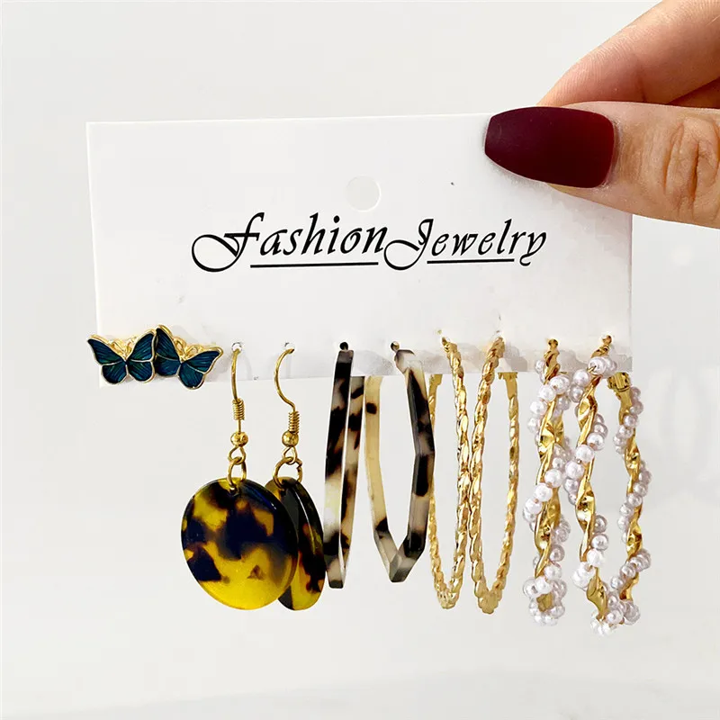 Набор винтажных серег с жемчугом, бабочкой, леопардовым принтом, дл...