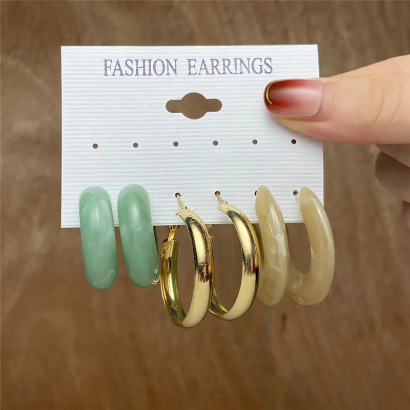 Богемные геометрические акриловые круглые серьги-кольца, разноцветн...
