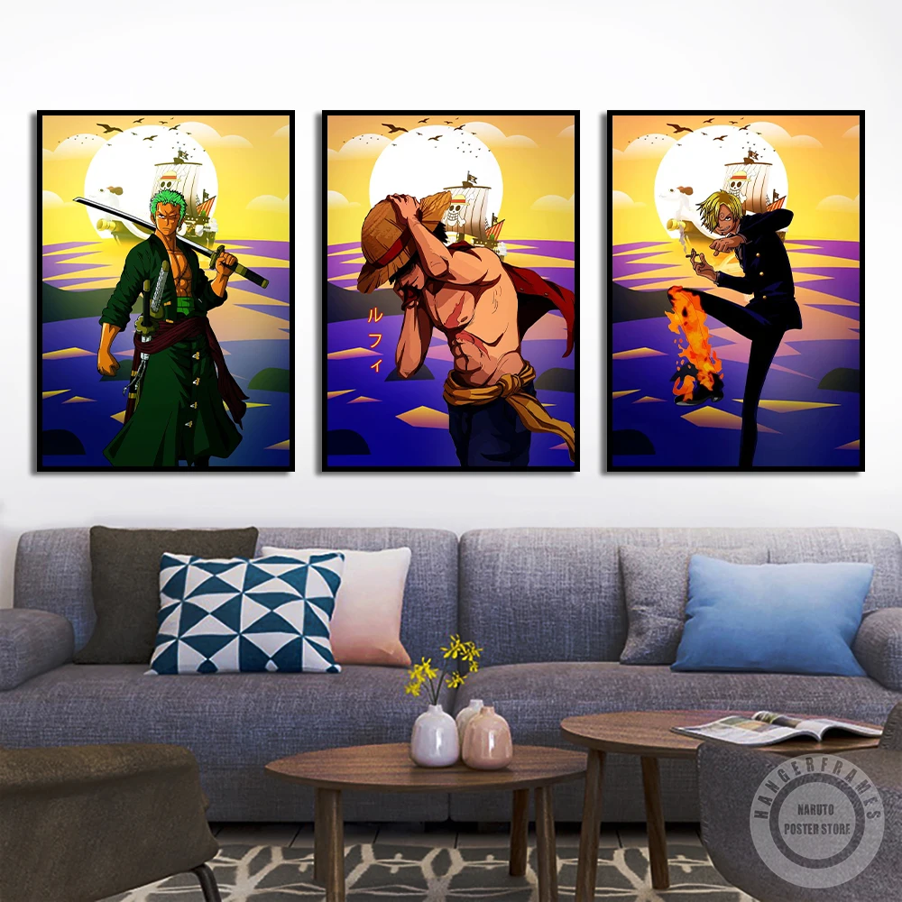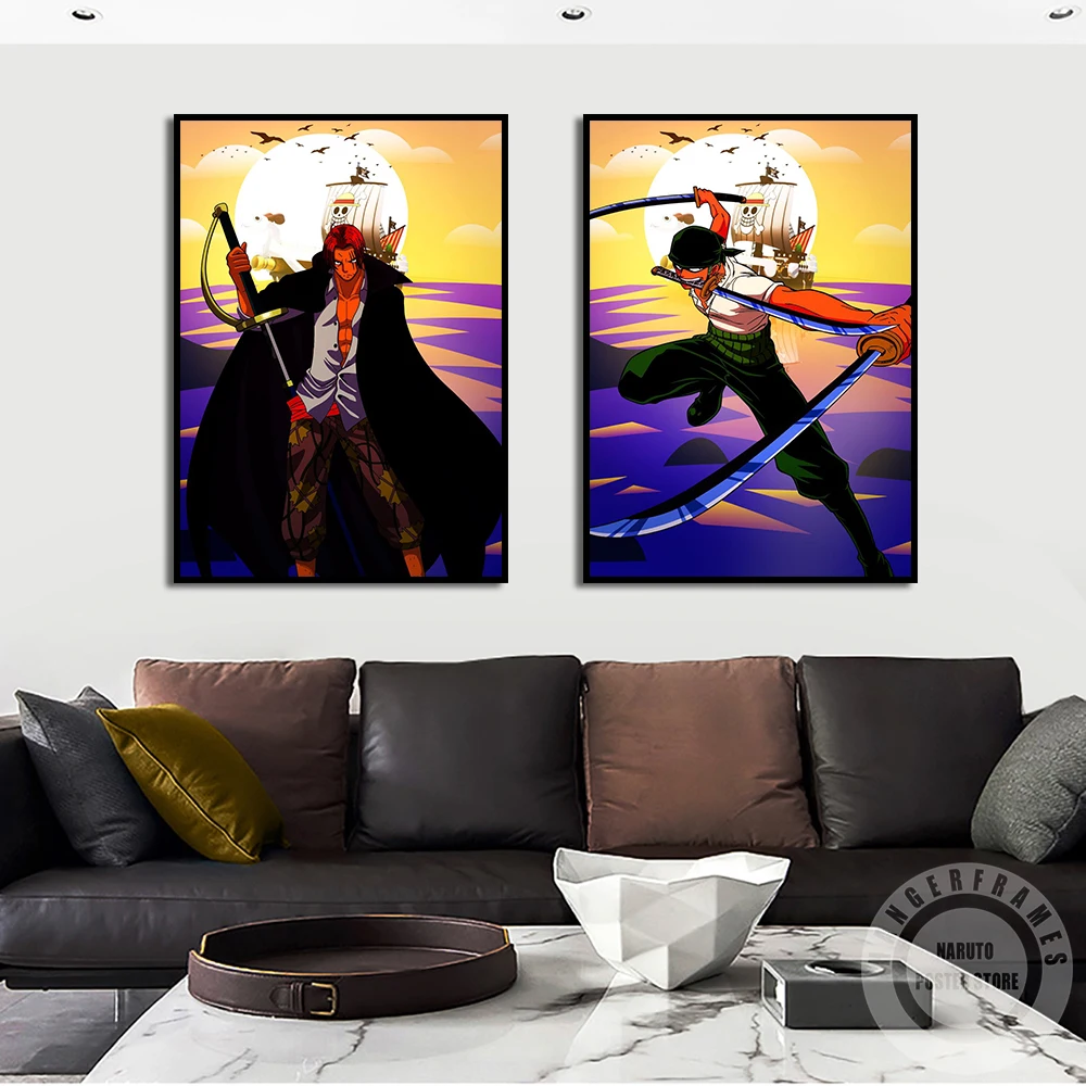 Соломенная шляпа, Постер пиратов, Луффи Зоро Shanks Sanji, настенное художественное украшение, принты на холсте, картины, аниме, поклонники, домашний декор