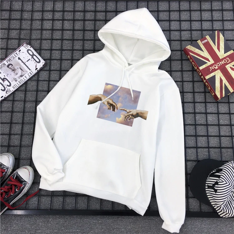 Худи с капюшоном в эстетическом стиле с изображением неба, в стиле Харадзюку, личные пуловеры, теплая Женская свободная уличная одежда, Свитшот